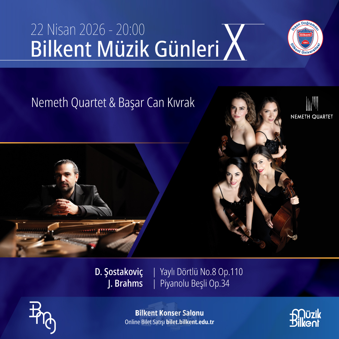 Shostakovich'in etürlü yapıtıyla başlayan bu akşam, Nemeth Quartet'in usta yorumculuğu ve Başar Can Kıvrak'ın piyano eşliğiyle oda müziğinin en duygu dolu anlarına tanık olmayı vaat ediyor. Bilkent'in estetiğine sahip salonında klasik müziğin sıcak atmosferinde kendini kayb